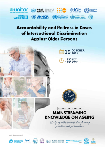 Webinar 16 10月 2025 4th Year. VIRTUAL ROUNDTABLE SERIES. "MAINSTREAMING KNOWLEDGE ON AGEING". 4th Event out of 5 (1 hour, 30'): "Accountability and redress in cases of intersectional discrimination against older persons" Open-registration event E-learning 关闭新注册